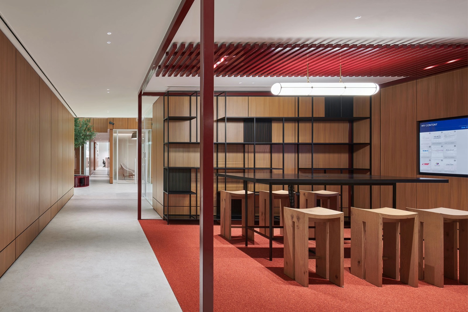 A DALI lighting control system was integrated throughout the workplace, providing pre-programmed scenes for different zones and enabling occupants to tailor the mood and intensity of the lighting to their individual preferences and working practices.