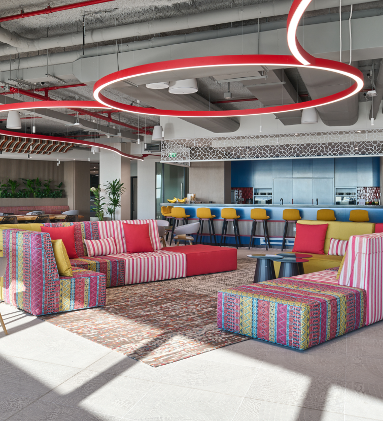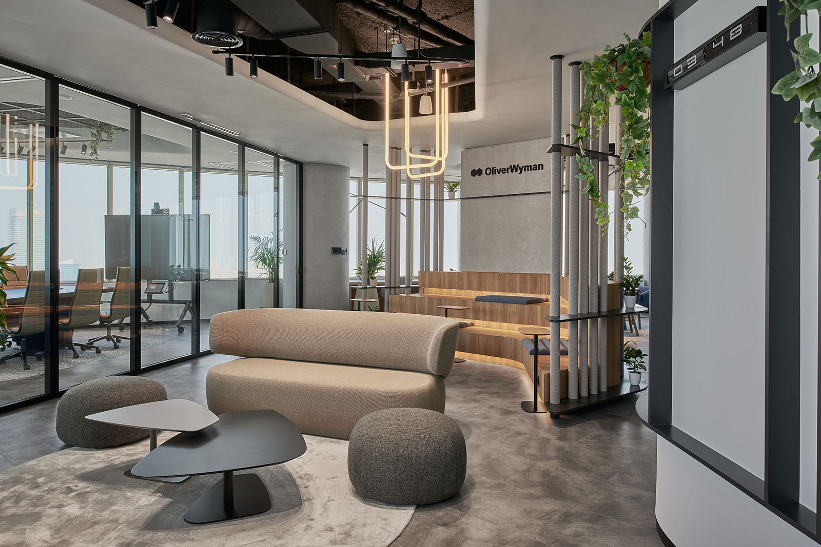 Management consultancy Oliver Wyman has opened a new office in Abu Dhabi, designed by Roar and infused with the studio’s signature playfulness. Our tailored workplace lighting scheme enhances the warm and adaptable interiors throughout.