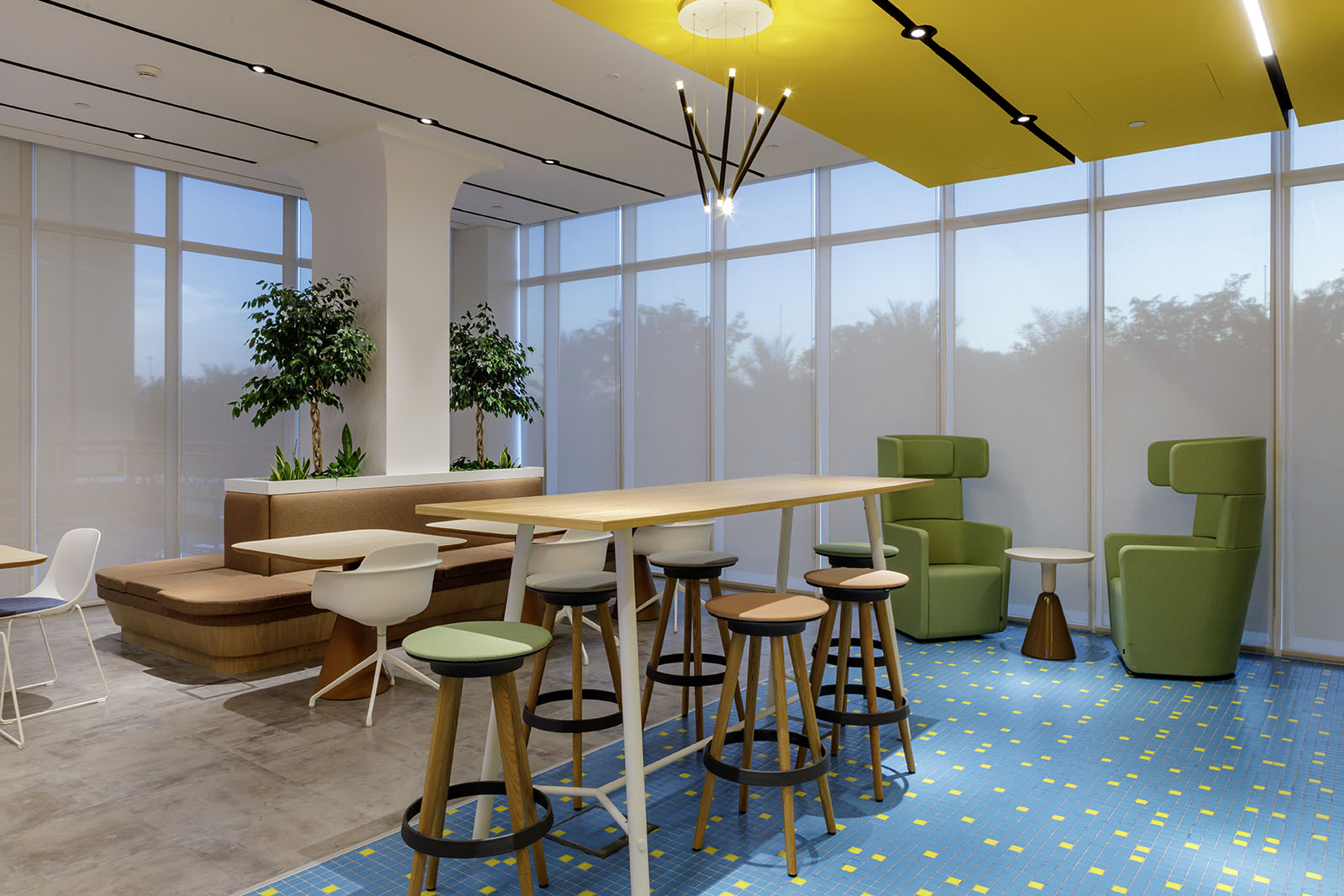 The intelligent lighting system adjusts according to occupancy and daylight levels, reducing energy consumption without diminishing the quality of lighting throughout the workplace.