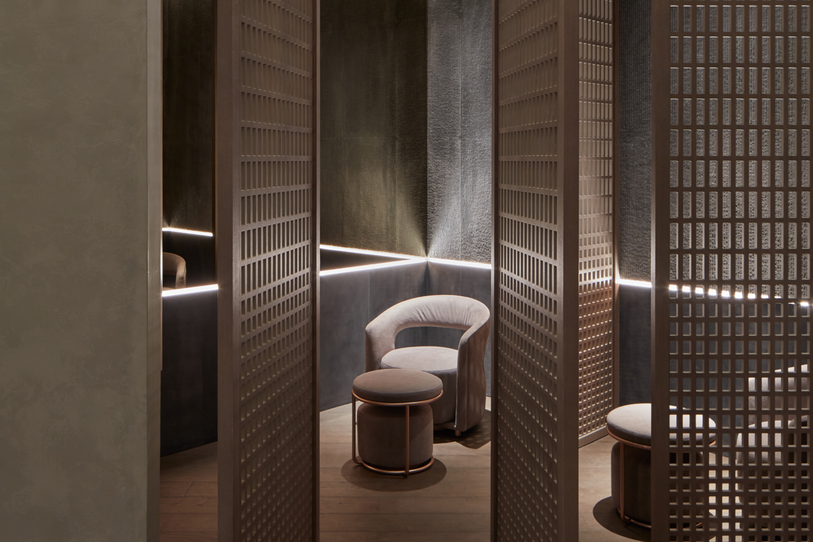 This flagship retreat, created by architecture and interior design studio Roar, is brought to life by clever lighting techniques that enhance the tranquil yet dramatic pan-Asian design, taking clients on a luxurious sensory journey.